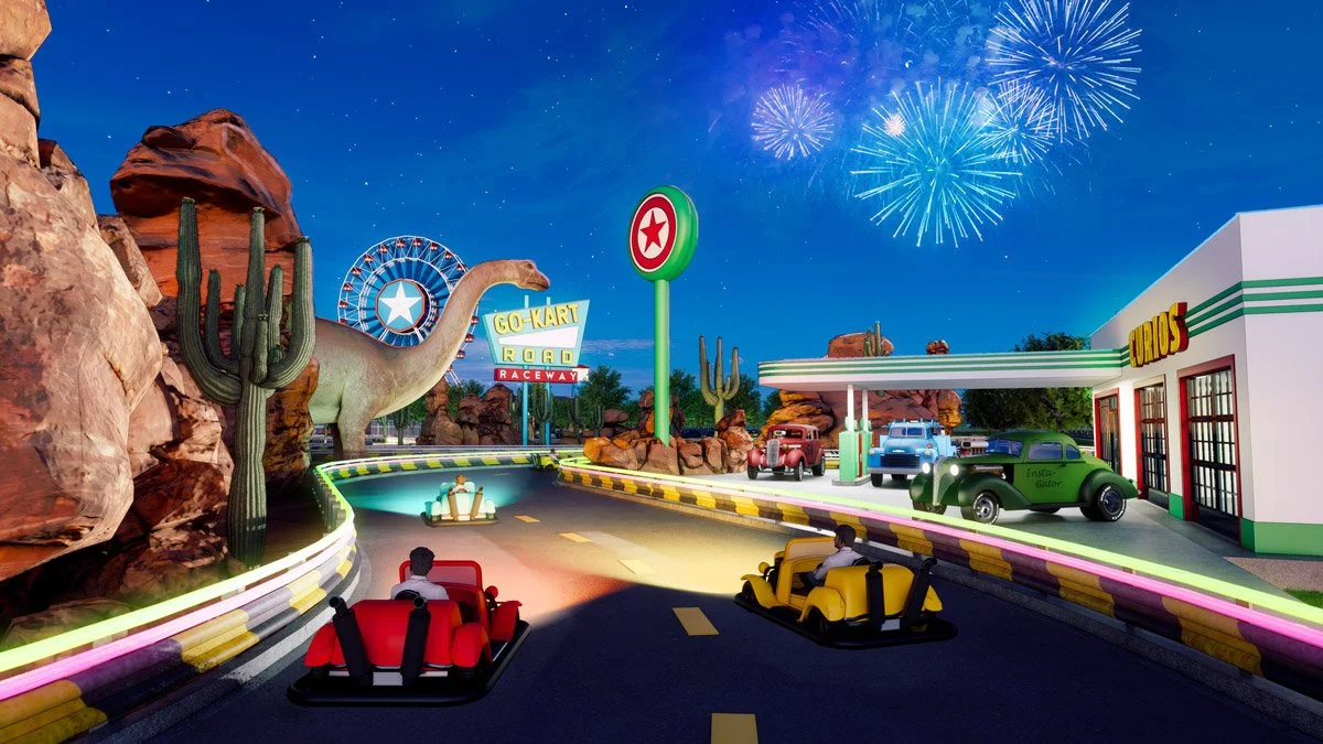 Put the top down and take in America’s love for the open road. Roadside Americana arcade, go-karts, play lands, and family dining.